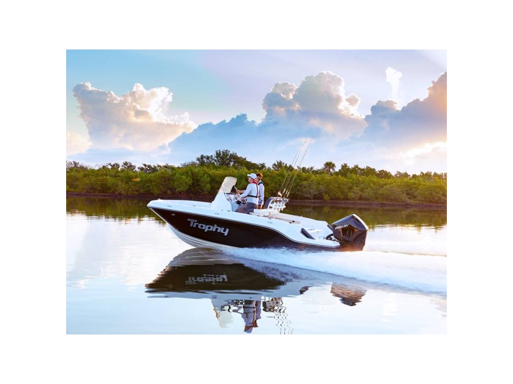 La gamme TROPHY du constructeur americain BAYLINER revient avec 3 modèles (20' 22' et 24') typés fishing US à console centrale avec un niveau de confort nettement supérieur à la moyenne. Ce bateau d'un peu plus de 6m est idéalement packagé avec un moteur hors bord V6 MERCURY qui lui confère un tempérament sportif