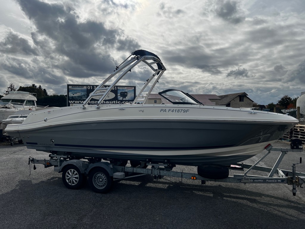 Le Bayliner VR6 BR est le plus grand de la gamme VR avec ses 6m80 de long il peut accueillir jusquà 9 passagers. Ce modèle d'occasion est équipé d'une tour de wakeboard Monster Tower, il est parfait pour les usages sportifs comme pour la ballade familliale.