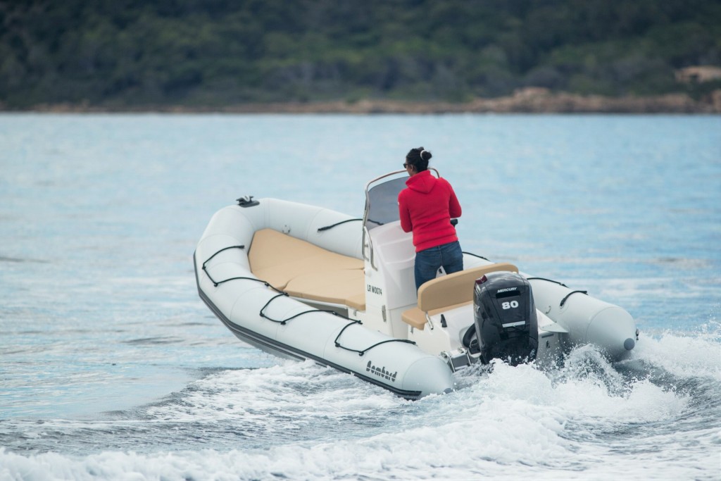 Ce semi-rigide bombard de 5m50 dispose d'une coque en V profond de 26° qui lui confère beaucoup de confort dans le passage de vague. la console dispose d'un grand pare brise et d'une main courante inox. la partie est dispose d'une table de cockpit et d'un kit bain de soleil. Nous proposons ce bateau en package avec 3 motorisations Mercury ou Suzuki à partir de 50 cv 4 temps